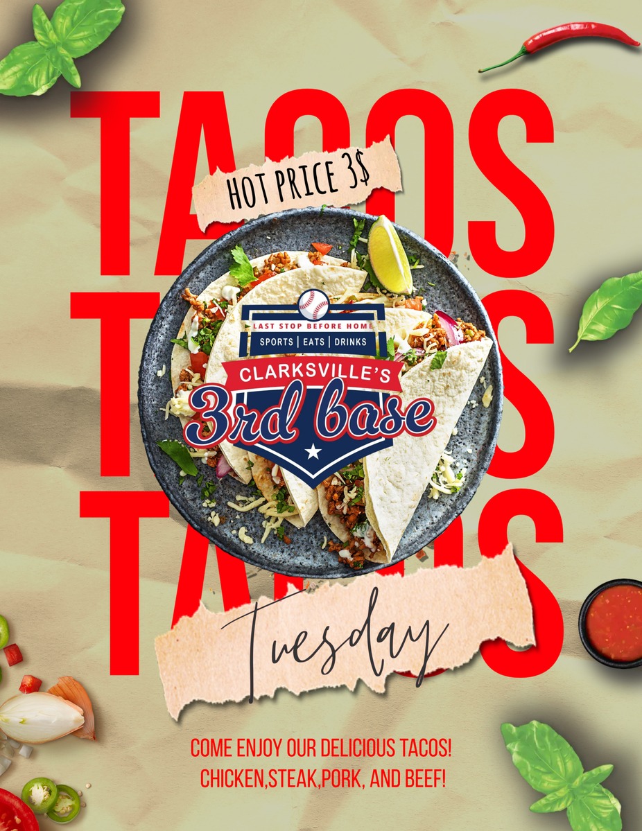 Taco Tuesday! Unbeatable drink specials, and $3 tacos!